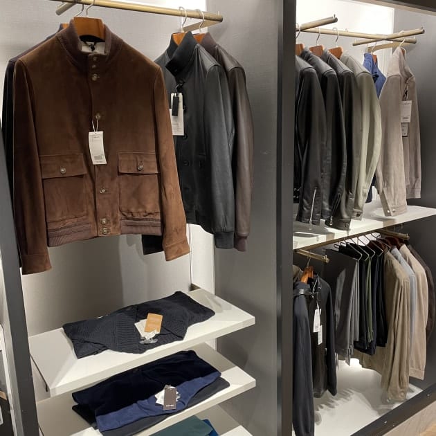 ヘリンボーンのコートに、中はブレザー。そのインナーに<DRUMOHR>を着せたマネキンコーディネート。レザーブルゾンとの合わせなんかも良さそうですね。