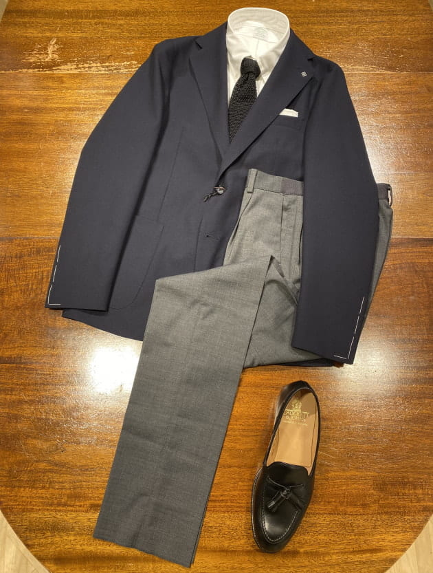 上質なウール素材とハリ感のあるナイロン素材、同色で異素材のコンビネーションが特徴的なモデルです。
