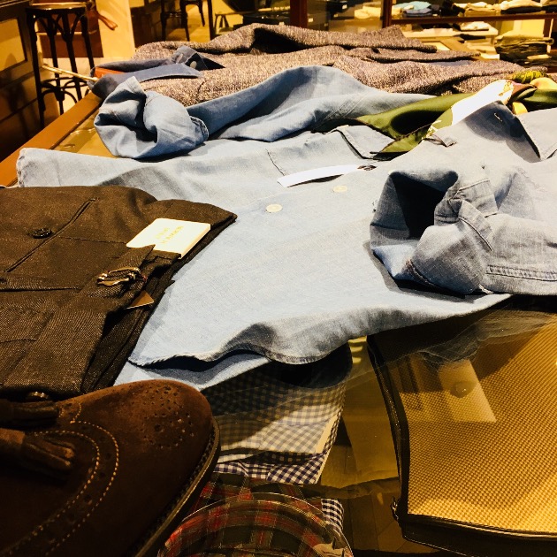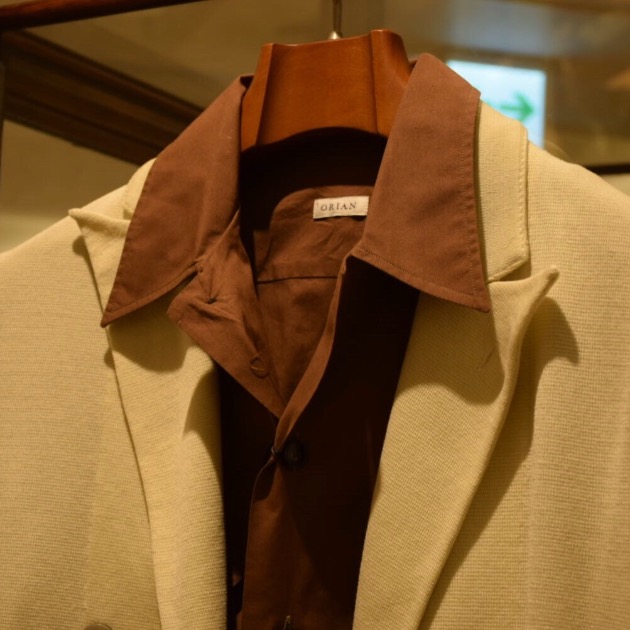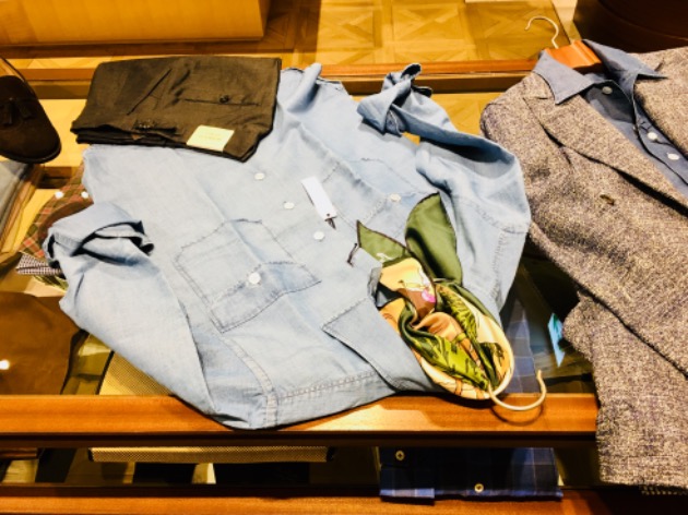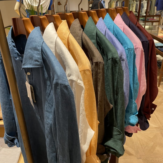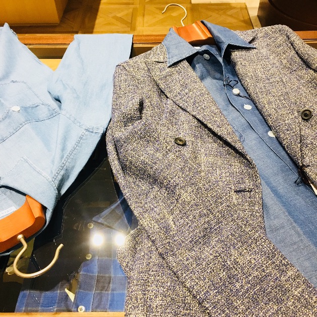 〈LUIGI BORRELLI〉のお品は上品な雰囲気で着心地も良いので、大変お薦めです。リネンが織り込まれた生地は、見た目にも涼しげですね。