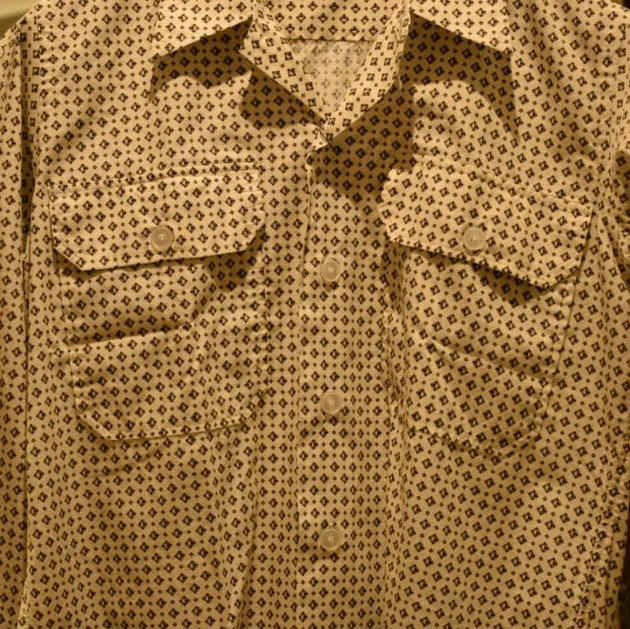 クレリックのシャンブレーシャツに、プリントのヴィンテージ調ネクタイ。差し色でグリーンを入れましたが、良い感じにおさまりますね。