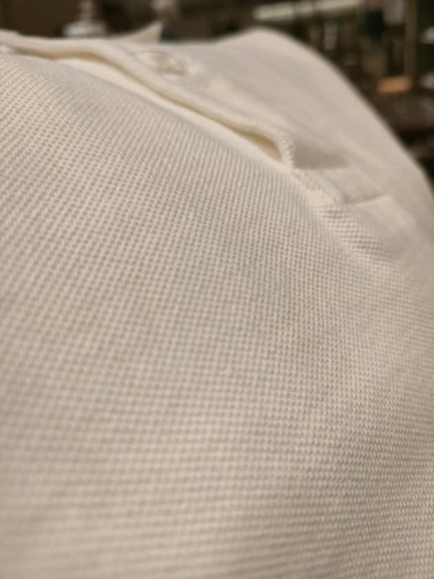 リネン50%、レーヨン50%で織り上げられた生地は、自然な風合いと上品な光沢が特徴的。シャリ感のある軽やかなタッチがこれからの時期に快適にお召いただけます。