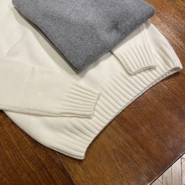インナーは〈RENCONTRANT〉のリネンニットT。高めのクルーネックに太い腰のリブが、控えめでいて絶妙なニュアンスを加えてくれます。