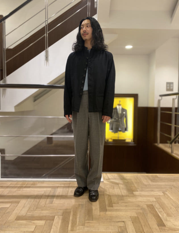 カットソーの上からガバッとアウターを