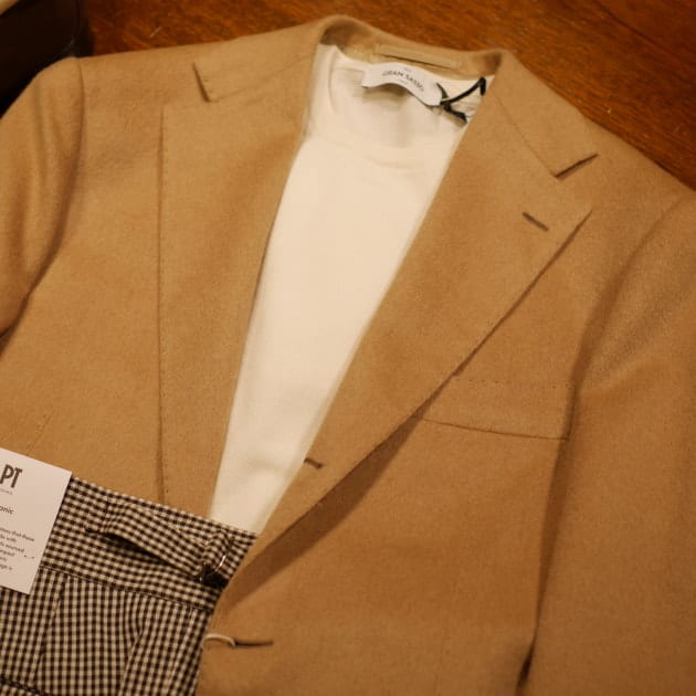 4つボタンというディテールが持つスポーティ加減と、素材のカシミヤが持つ上品さ。そのどちらの要素に振ってもコーディネートが成立するので、かなり幅広く活躍してくれるジャケットではないでしょうか。