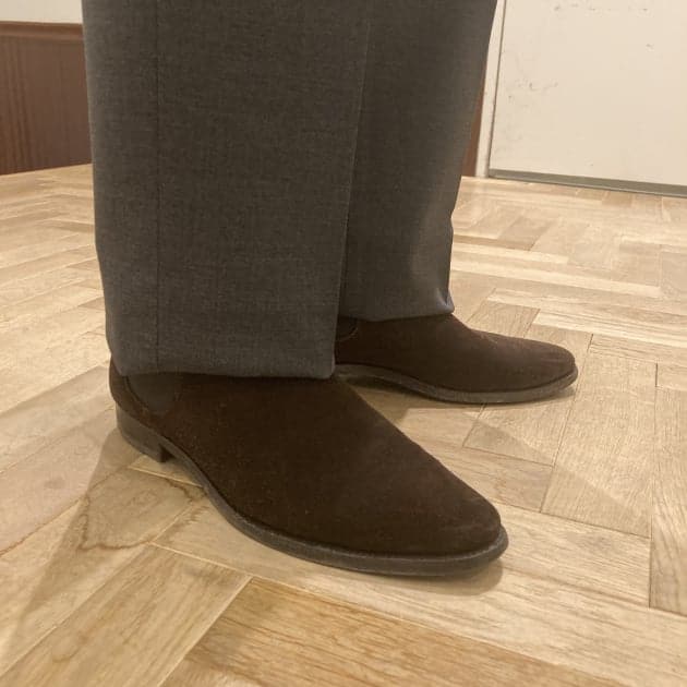ここまでブラック尽くしなので、せめて軽さを出す為にスエードで変化をつけます。