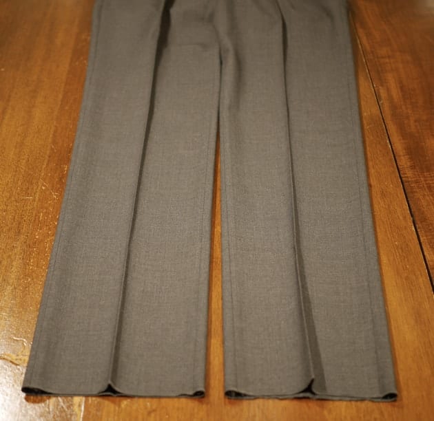 ジャケット、ニットとフラットな素材感だったので、パンツで少し立体感をプラス。