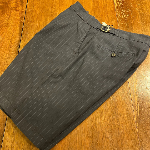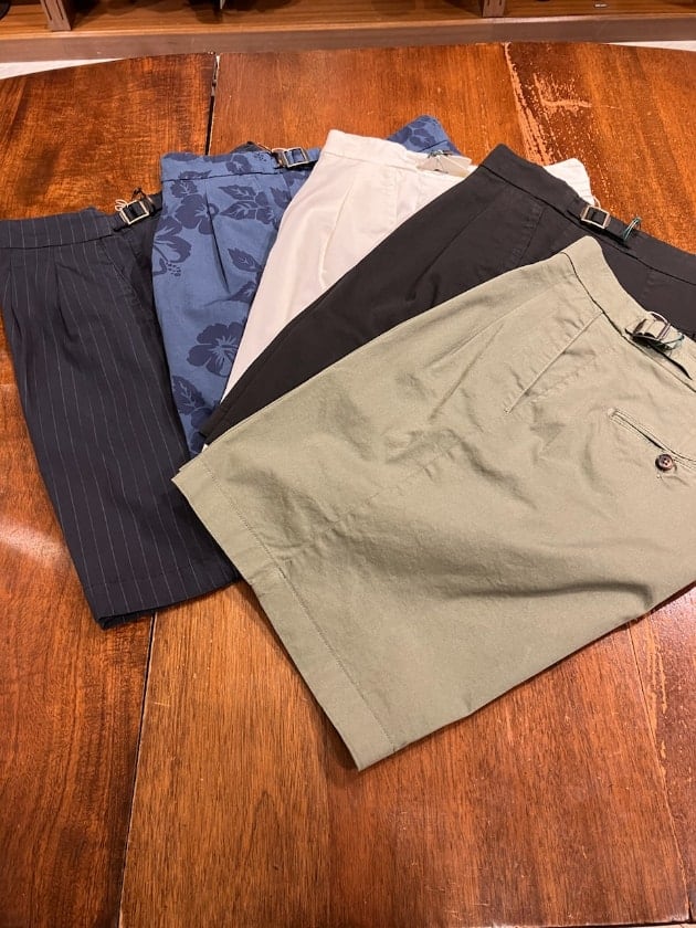 個人的に気になるのはこちらのピンストライプ。花柄や無地のモノは定番ですが、ショートパンツでストライプって案外見ないですよね。