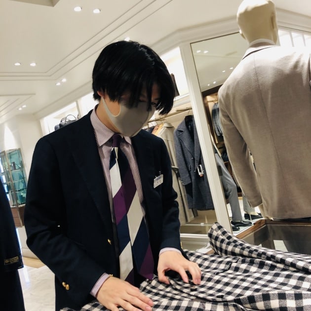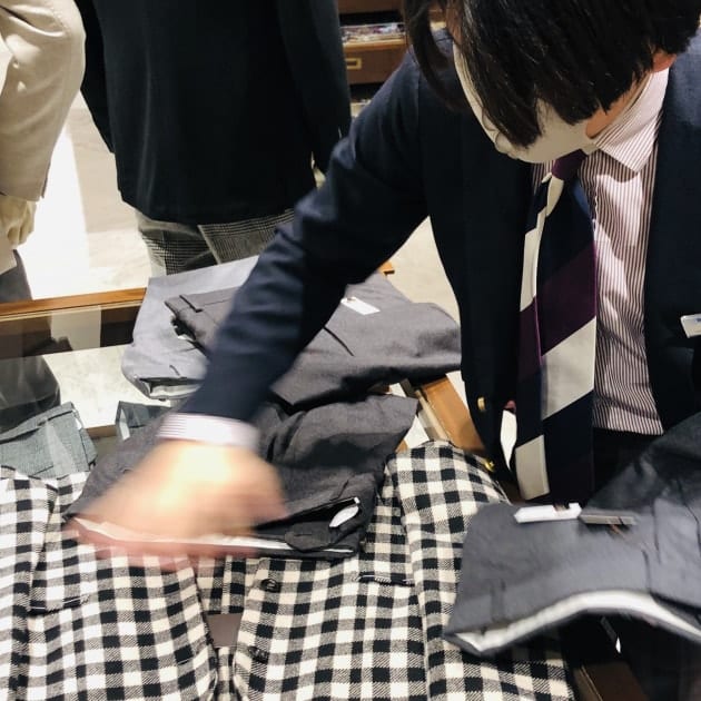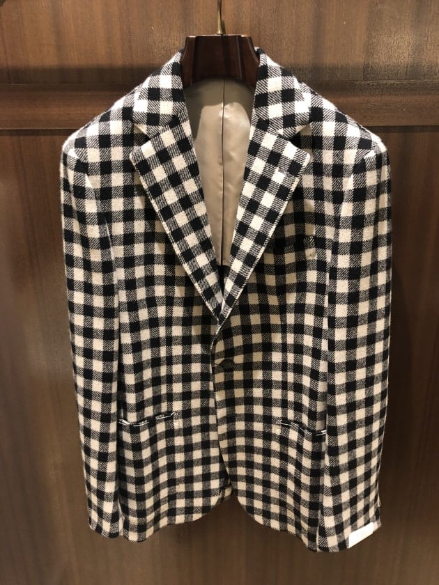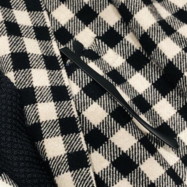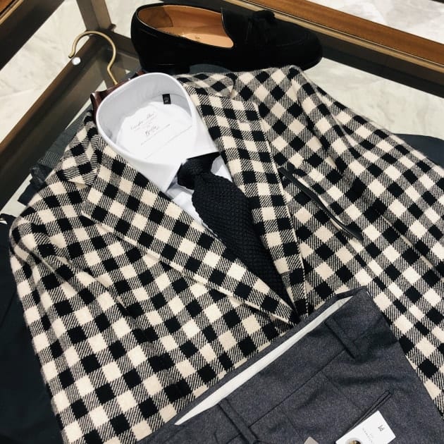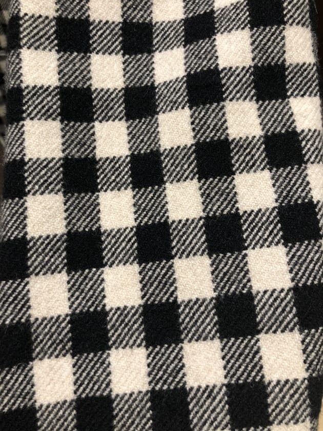細かめなハウンドトゥース柄。遠巻きに見ると無地ライクな柄です。こんなん合わせやすいに決まっとります。と思わず関西弁も飛び出る一品です。