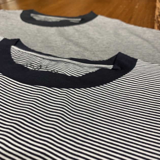 今シーズンはボーダー柄で3色。5mm×6mmピッチの少し細ボーダーです。意外とこのピッチのボーダーは<MAISON CORNICHON>くらいしかなく、特徴的なボーダーTと言えます。