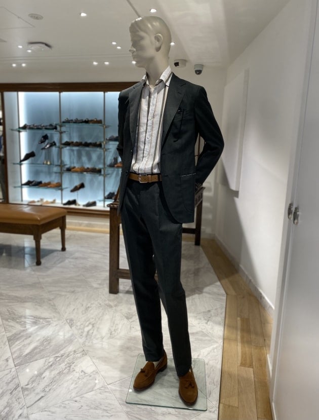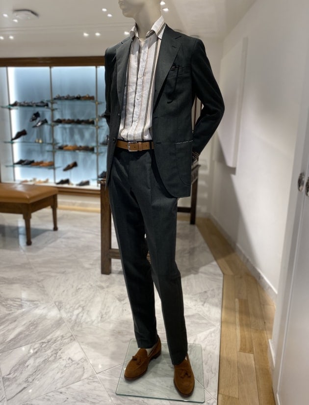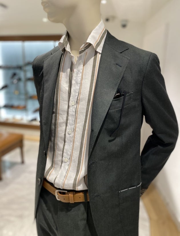 スーツスタイルにも使えるとても万能な素材です。