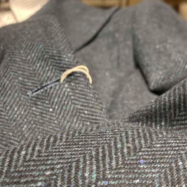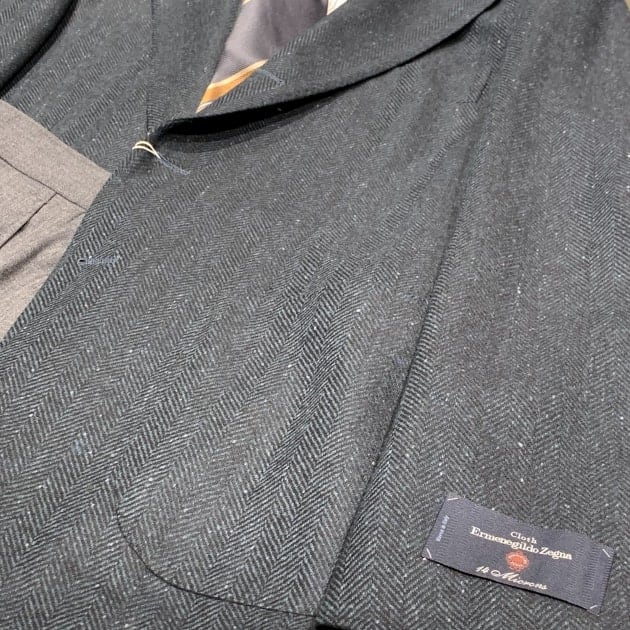 <De Petrillo>のヘリンボーンジャケットは生地違いでこちらも入荷しております。ぱっと見はグレーヘリンボーンですが、
