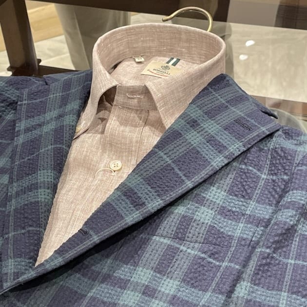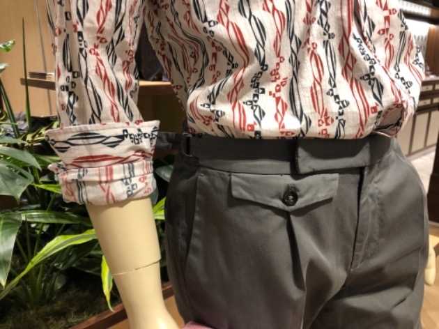 リネン素材のバンドカラーシャツを合わせてみてはどうでしょうか。