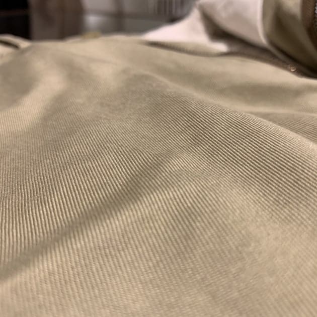シルエットは60年代リーバイスのアイビーリーガー向け尾錠付きスリムテーパードチノ。緩やかなデーパードシルエットです。スリムとはいえサイズ40で裾幅21cm程ありますので、BEAMSの商品と比較するとゆったり目のシルエットですね。