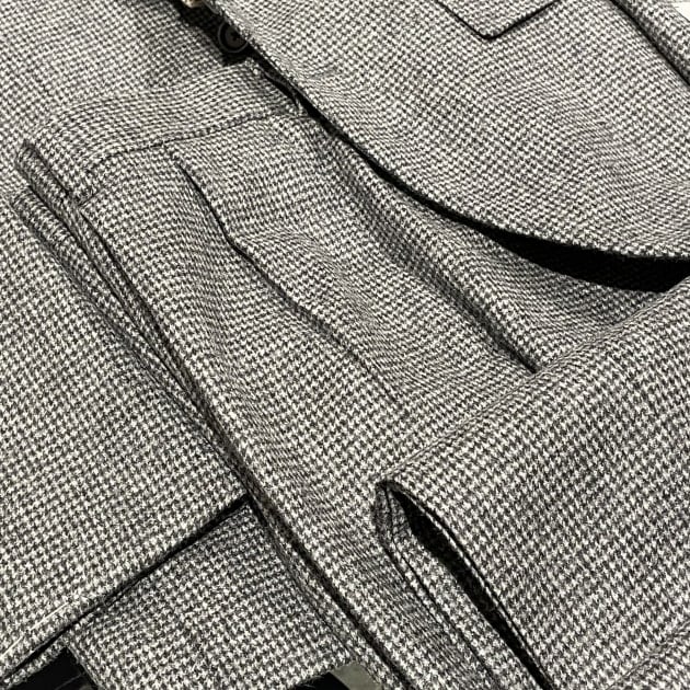 細かいハウンドトゥースなので、柄の主張がそこまで強くなくシックな印象の柄物生地です。勿論しっかりウェイトのある肉厚な素材感。秋冬シーズンのスーツ、という感じがします。