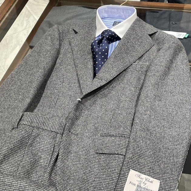 先日のブログではブラウンのグレンプレイド柄をご紹介しましたが、こちらはグレーのハウンドトゥースです。