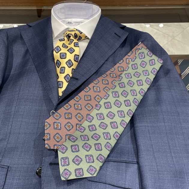 そうした方々には朗報です。いま店頭は、洒落た雰囲気のネクタイたちで溢れかえっております。