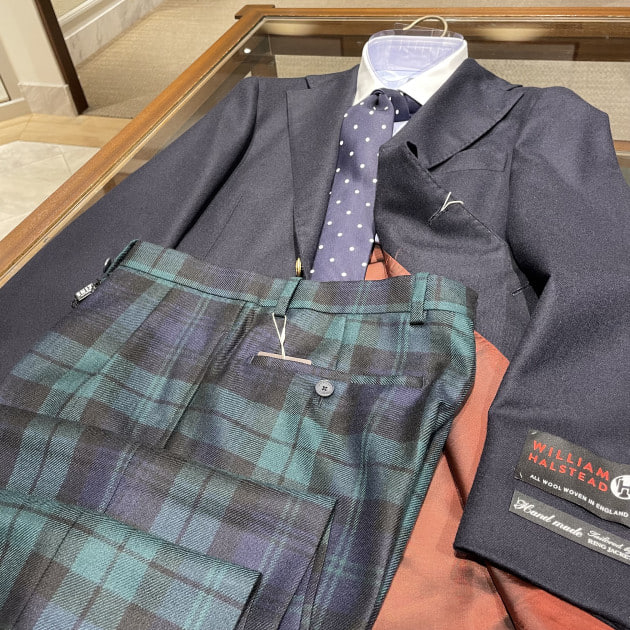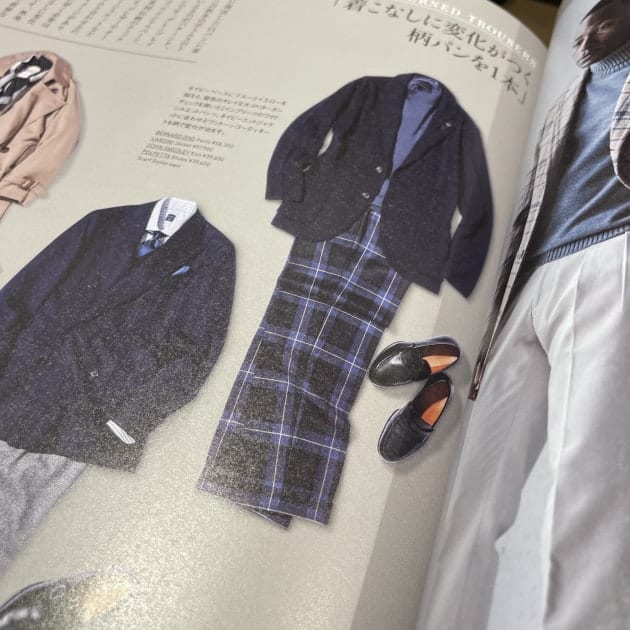 コーディネートはこんな感じで。明るすぎず暗すぎない絶妙なトーンの生地なので、このようなネイビーワントーンや、