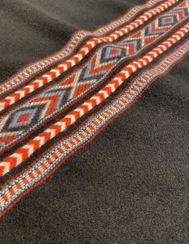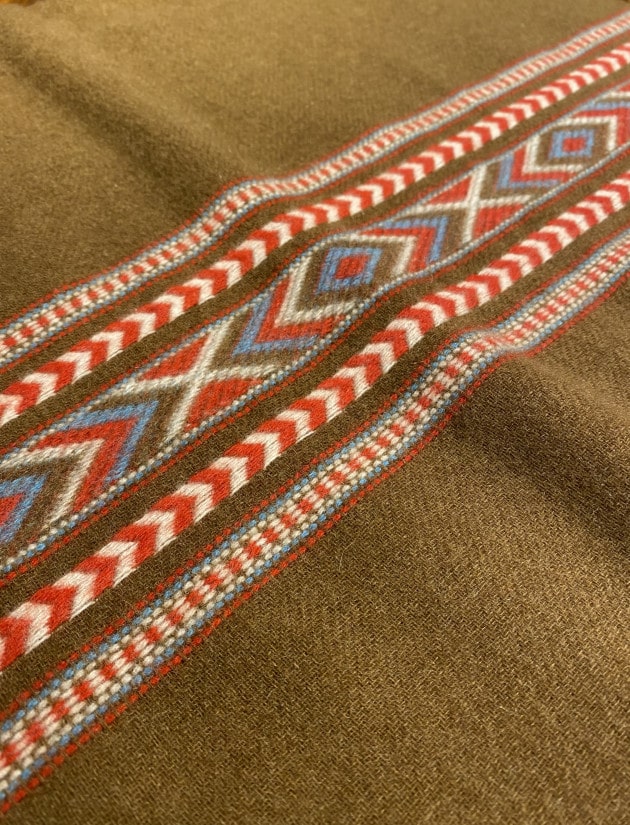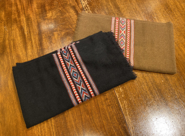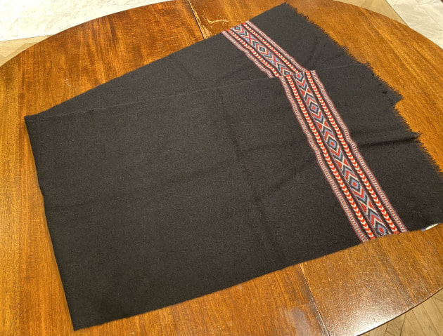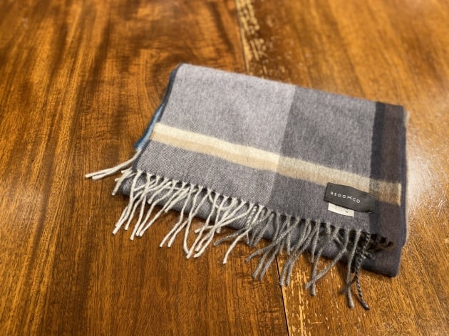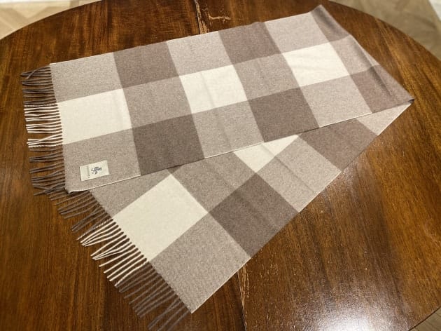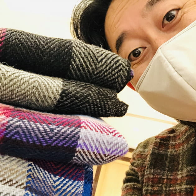 ふわふわの素材感。非常に柔らかく軽いタッチのストールです。もともと大判タイプであったものを35cm×180cmのストールサイズに別注しています。