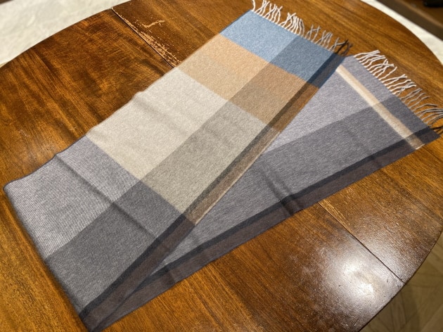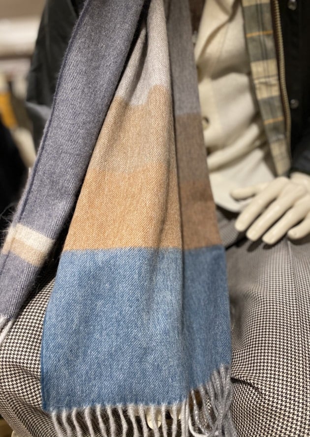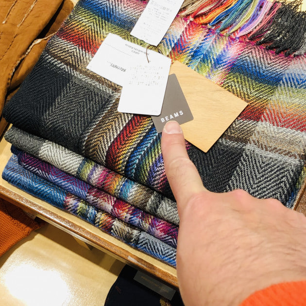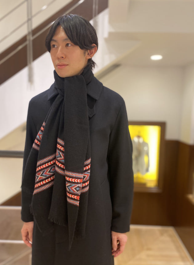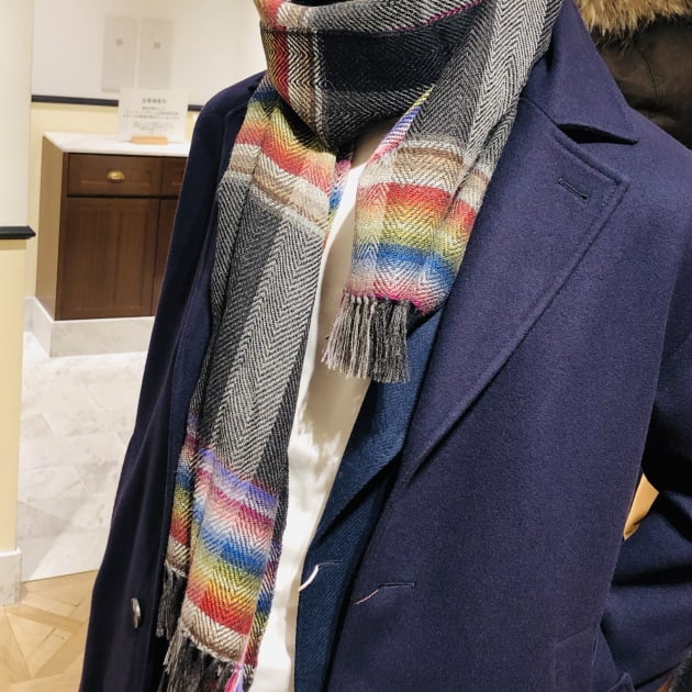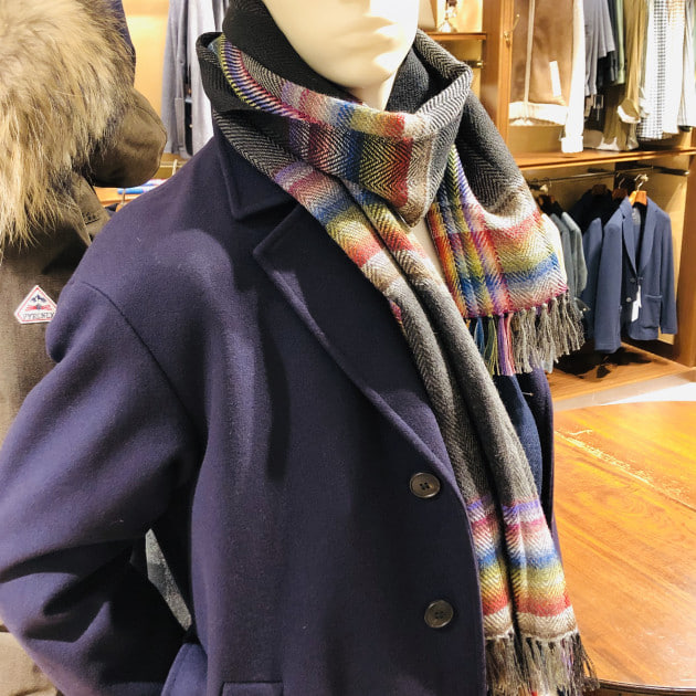 この季節になると、店内マネキンのコーディネートでもストールを用いることが多くなるのですがおそらく殆ど柄物を使っているケースが多いと思います。ある程度"映え"が必要なので。