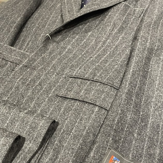 EASYシリーズのコーデュロイスーツです。カラーはこちらのGREIGEのみ1色展開。3つボタンパッチポケット、組下は1プリーツベルトループ付き。オーソドックスなスタイルです。