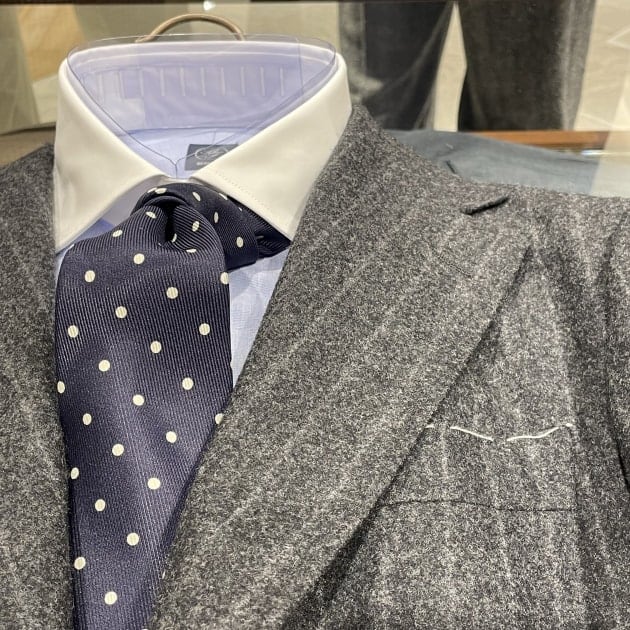 このネクタイとのコンビネーション、我ながら結構好きな感じです。この組み合わせでお召し頂けたら嬉しいです。