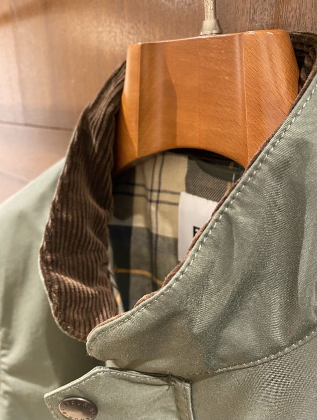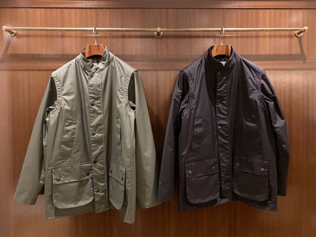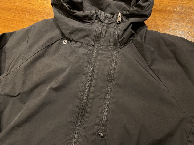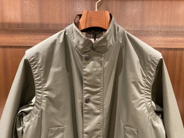 スタンドカラーにラグランスリーブが