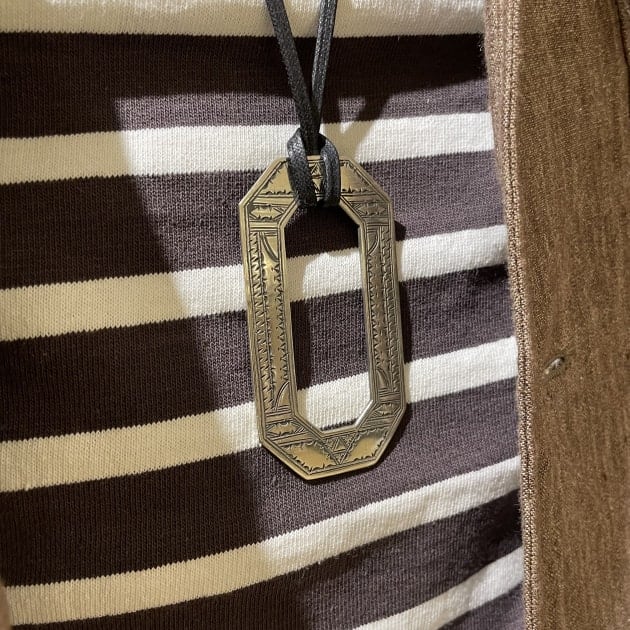 インナーには<GRAN SASSO>のクルーネック。首の面積が広いクルーネックならではの抜け感が出ます。