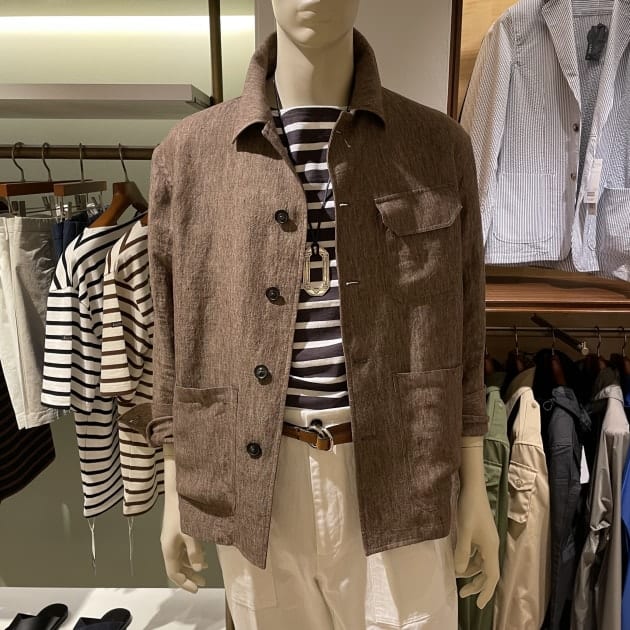 こちらは一転、休日のリラックスしたお出かけスタイルをイメージ。軽い仕立てなのて堅苦しくならないですが、あくまでジャケット。レストランも怖くありません。