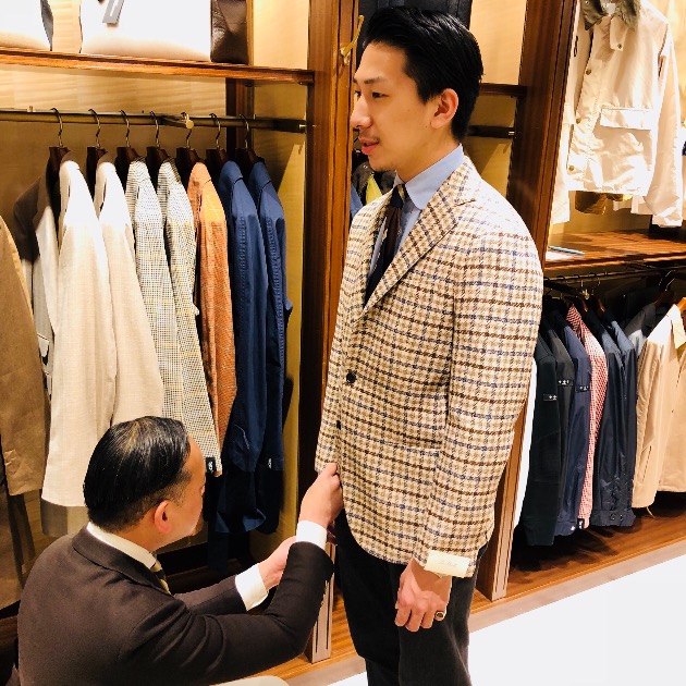 自前のジャケットも柔らかなシアサッカーのジャケット。
