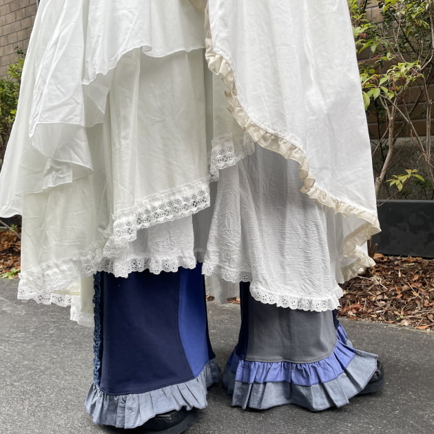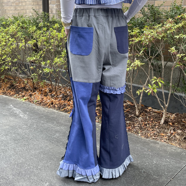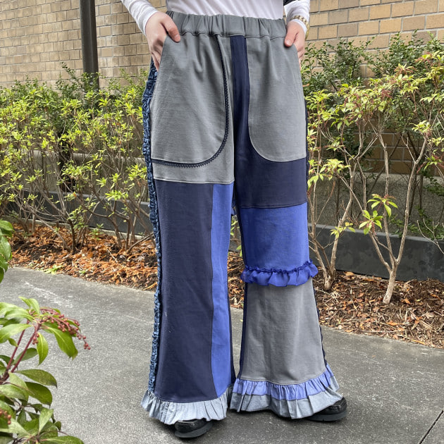 裾はゴムが付いているので、絞ることにより短丈に。その仕様のおかげでスタイリングを抜群にカッコよくみせてくれます。