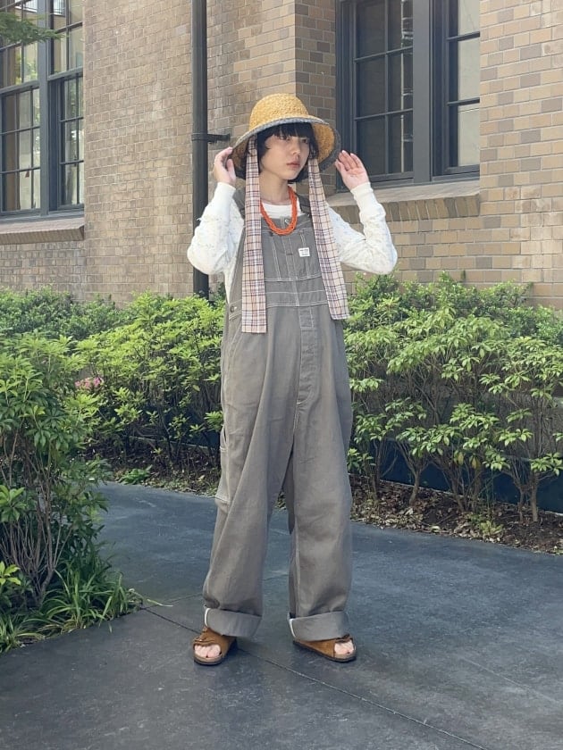 スタッフ【前大道(161cm)】が、〈BIG MAC〉のオーバーダイ オーバーオールのグレーを着用したスタイリング♡