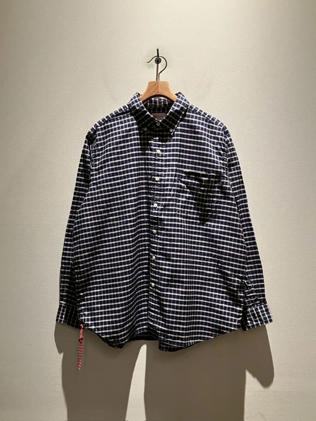 一見暗めでキレイ目なチェックシャツに見えますが、よく見るとレトロなチェックシャツ。