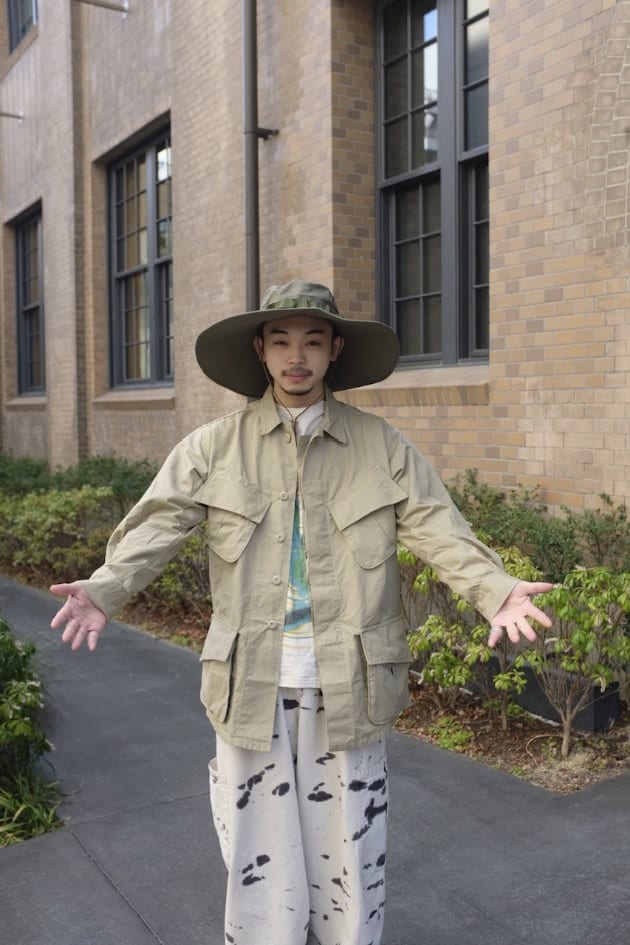 ファティーグジャケットをベースにスタイリングを組んでみました。