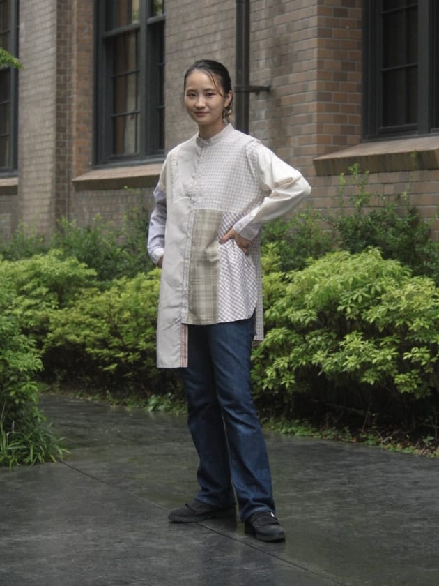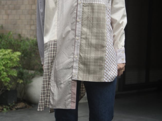 ワンピースとしても着れそうな長めなシャツブラウス。