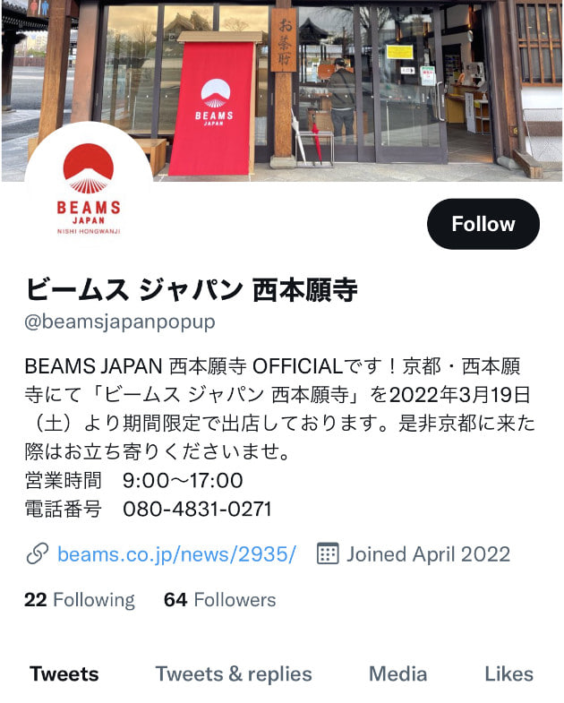 ビームス ジャパン 西本願寺のTwitterがございます!