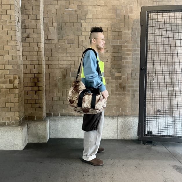 コットンとナイロンの混紡素材により、丈夫さと若干であれば水も弾いてくれる便利なやつ。