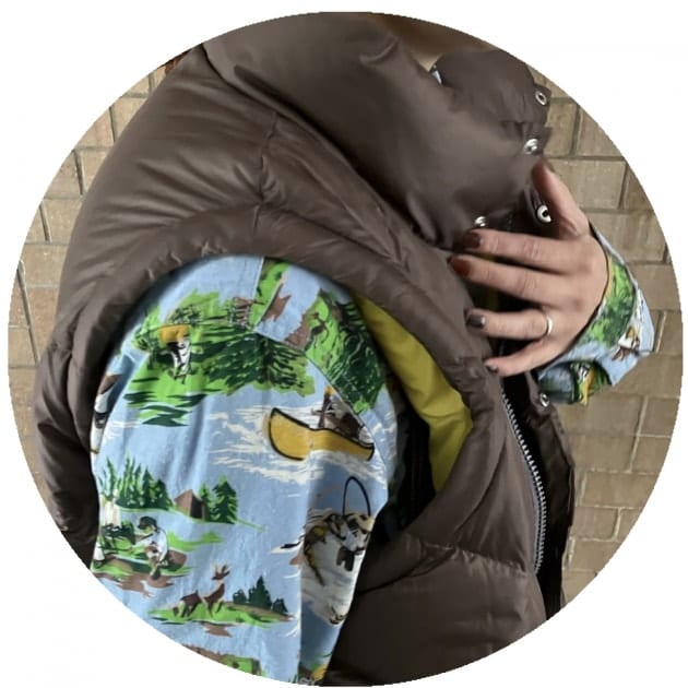 付属の袋に収まるので、出掛け先の持ち運びにも便利です。一枚目の写真の私が担いでいた袋の中にはアウターが入っていました♪