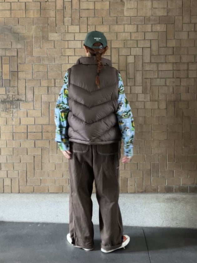 ベストに重ね着して出る袖の色や柄によっても見え方が変わって着回しが楽しめますね!