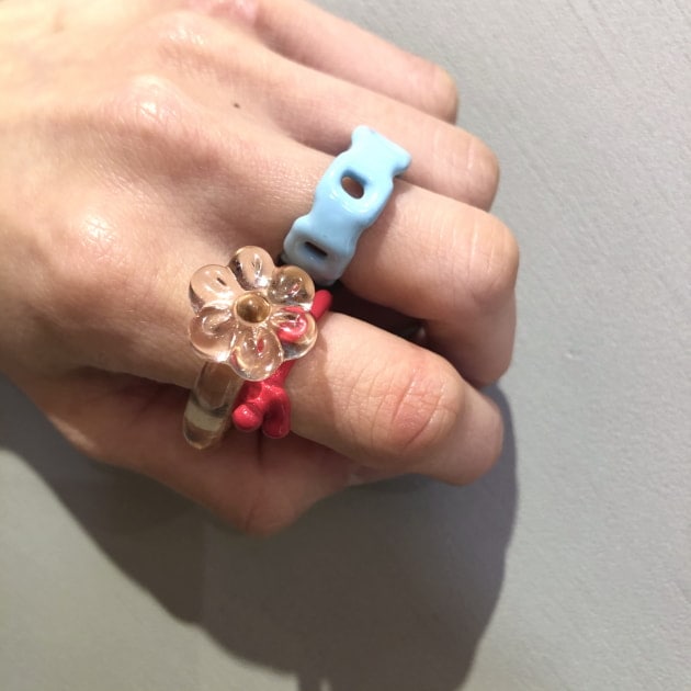 BEAMS BOY フラワーボタン ガラス リング