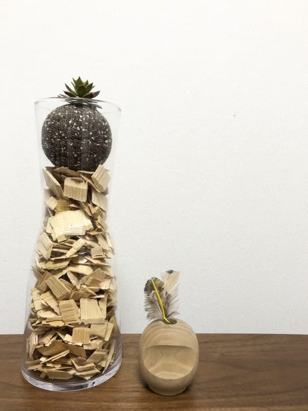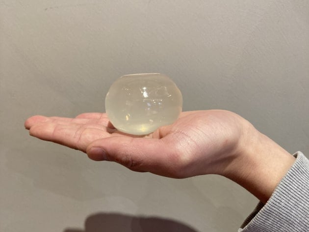 コーガ石と呼ばれる新島特有の希少な素材を使い、新島ガラスの魅力を伝えています。