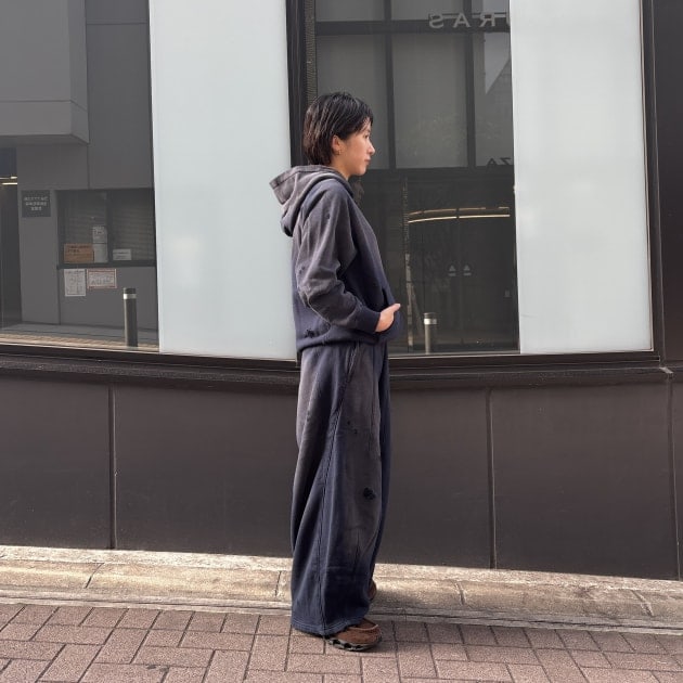 ヒザデルパンツは本当にシルエットが何にでも合わせやすく、1枚持っておいて間違いのないアイテムです◎