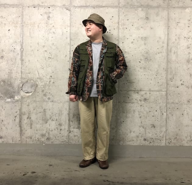 カメラマンジャケットに、デニムジャケットをレイヤード。