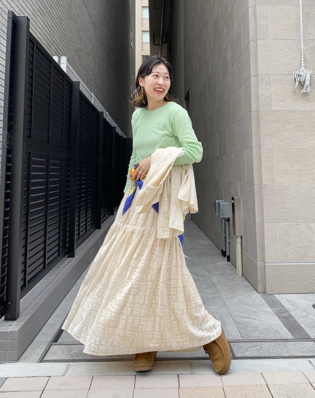 ふんわりボリュームがあるのでついつい動きたくなるティアードスカートです!