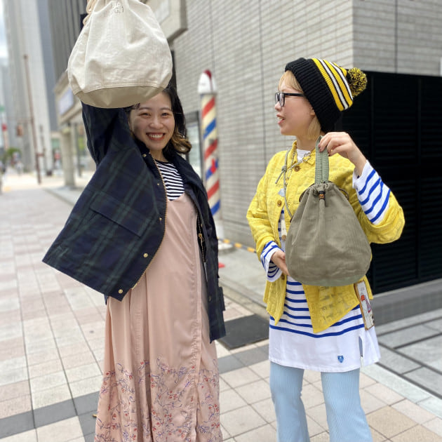 後藤は女性らしいスタイリングに、飯田はボーイッシュなスタイリングに、、、それぞれの個性が出る合わせ方ですね◎