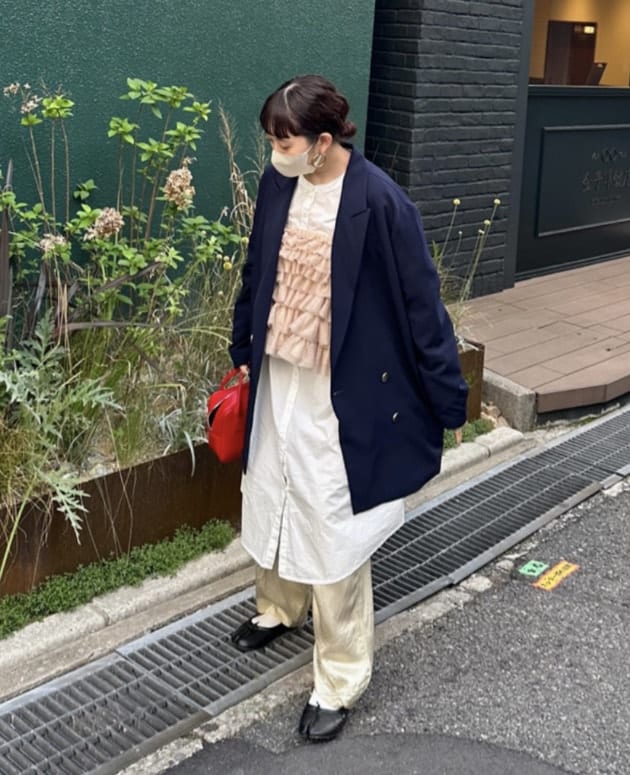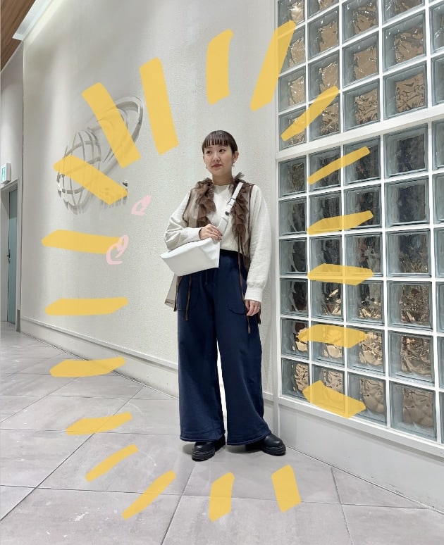 淡いパープル色なので、ネイビーのパンツやスウェットなどで合わせたいです♡