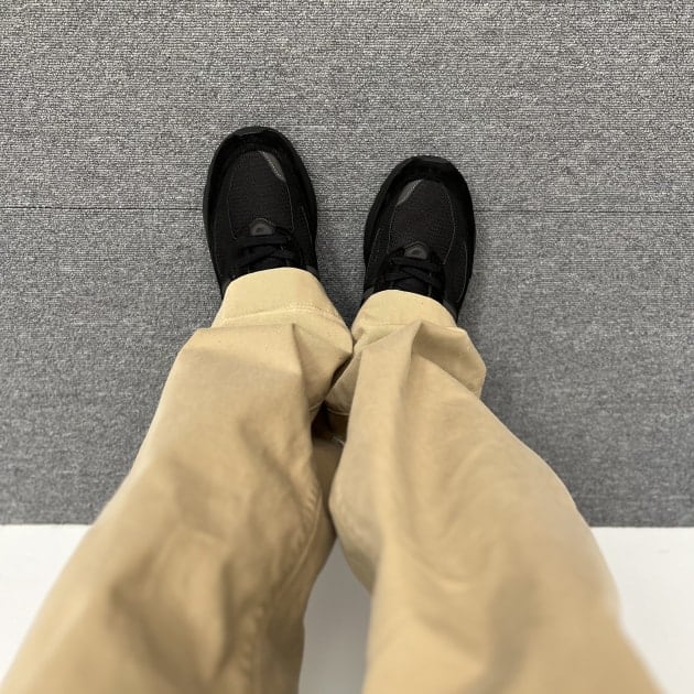 以前は真ん中のラバーみたいな生地は黒でしか作ることができなくて、数年前にやっと黒以外で製造が可能になったそうです。