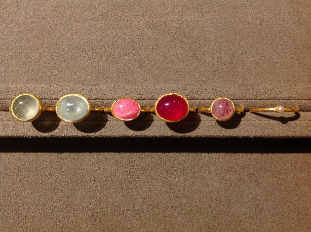 たくさん重ね付けをしたくなるこちらの天然石リングはシルバーの土台に24金メッキ使用。可愛さの中に高級感