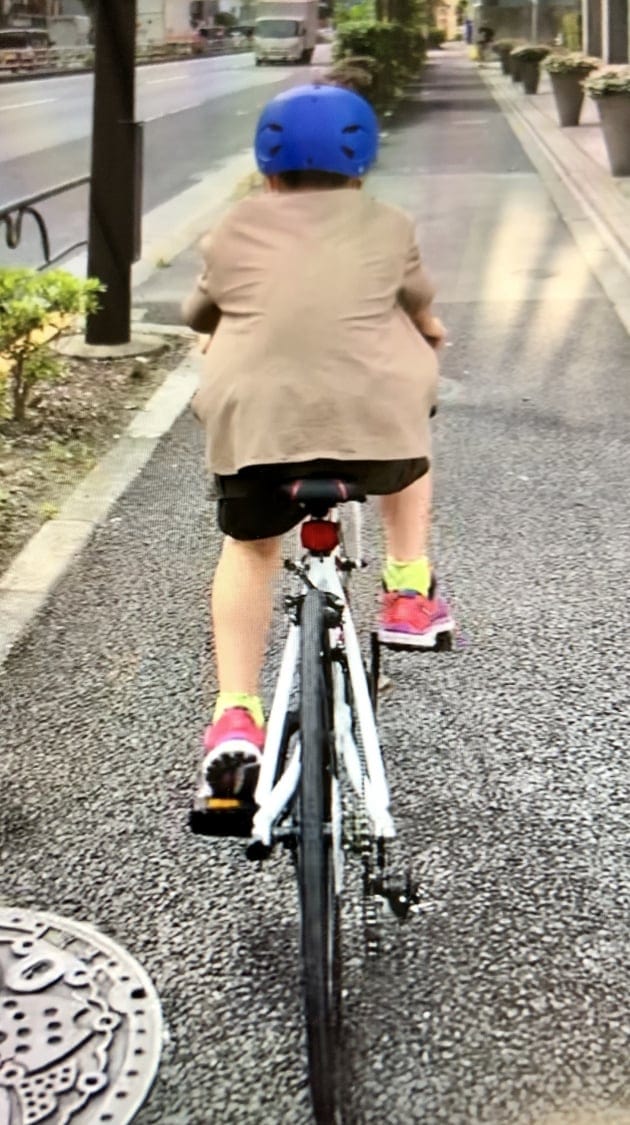 サドルにすわれずにまたいで歩いてるだけでしたが、、