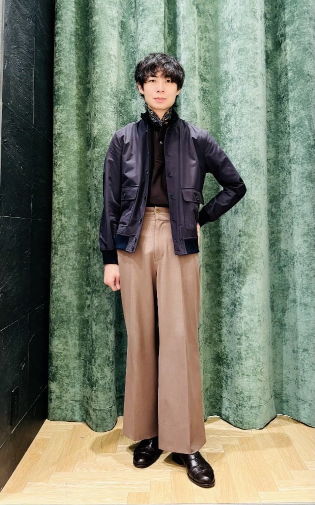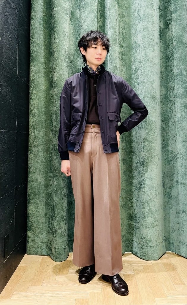 まだまだ春の冷たい風が吹くこの季節。襟を立てたり、スカーフで首元のボリュームを付けたり…そんな着こなしも雰囲気良いですよ。