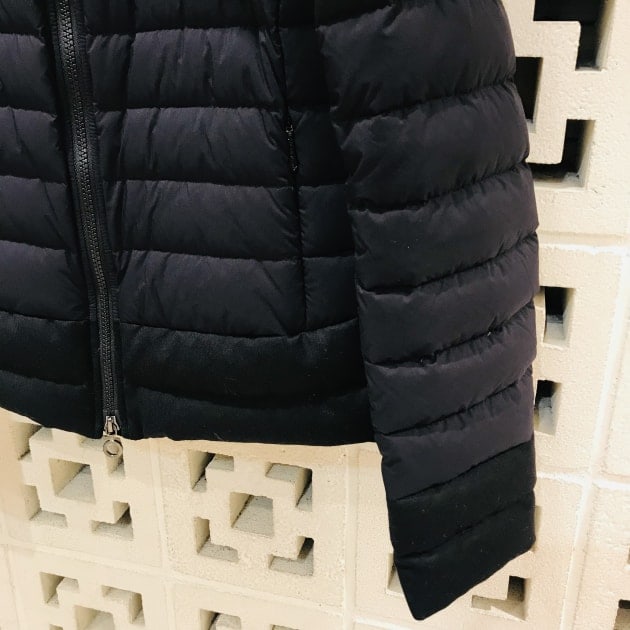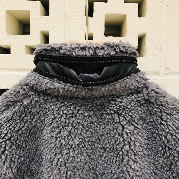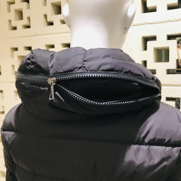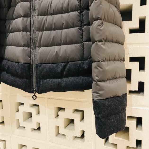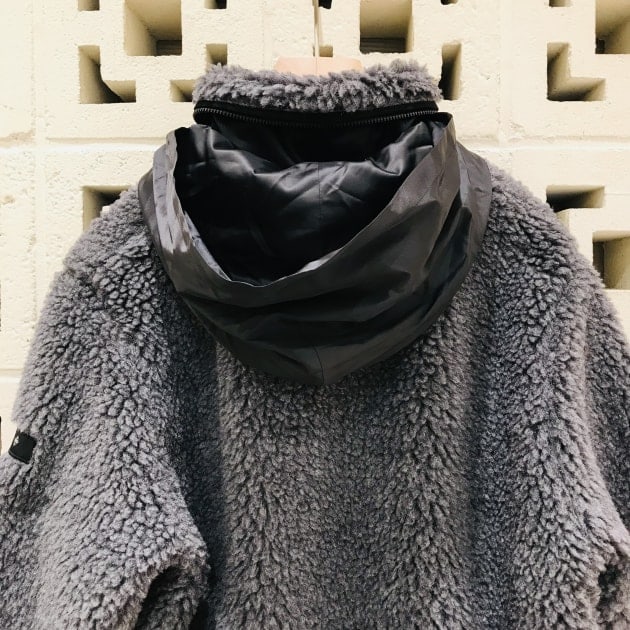 両サイド、ジップでの開閉が可能。フロントジップを閉めた時の圧迫感、或いは幅広なボトムスを合わせる時の抜け道として。